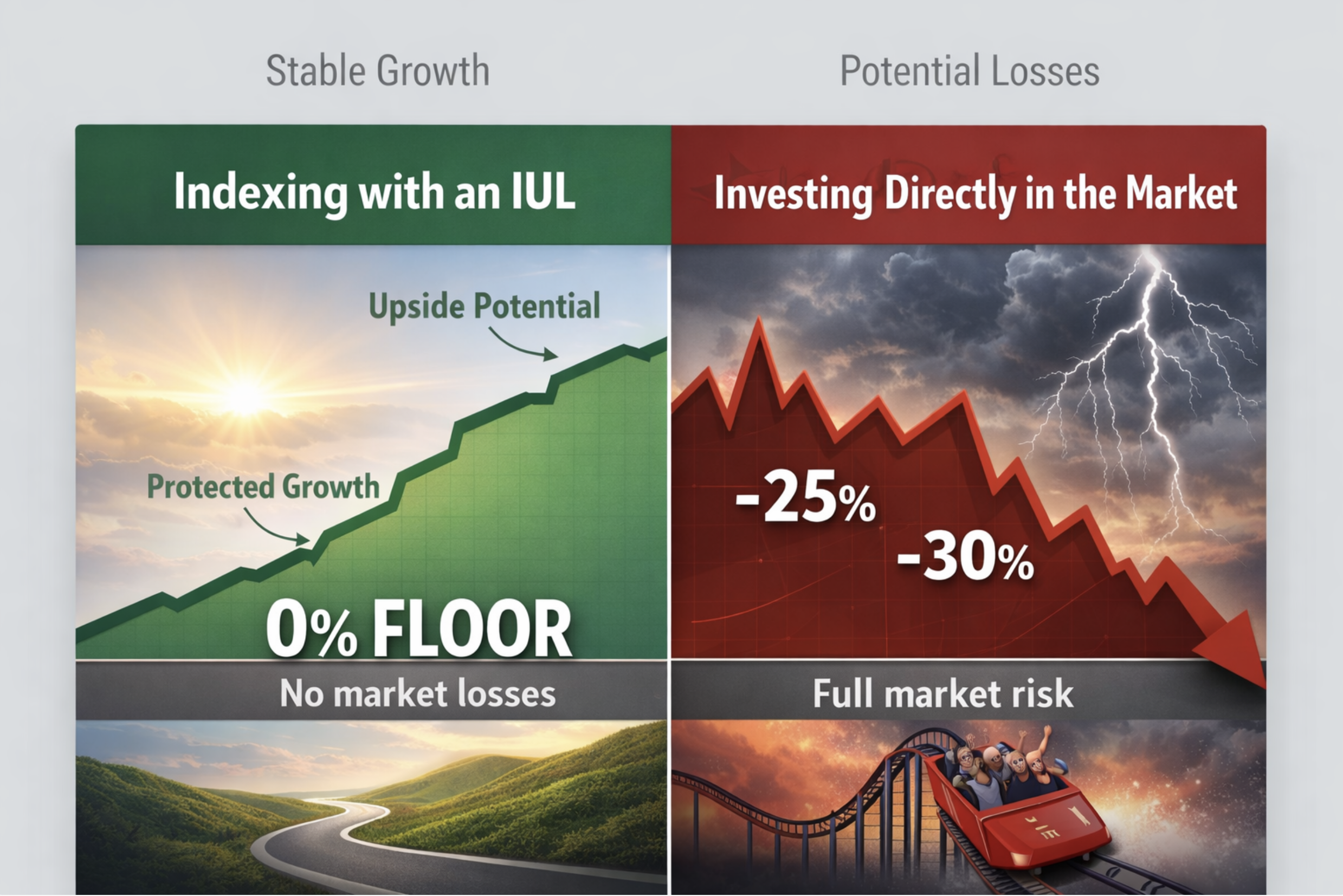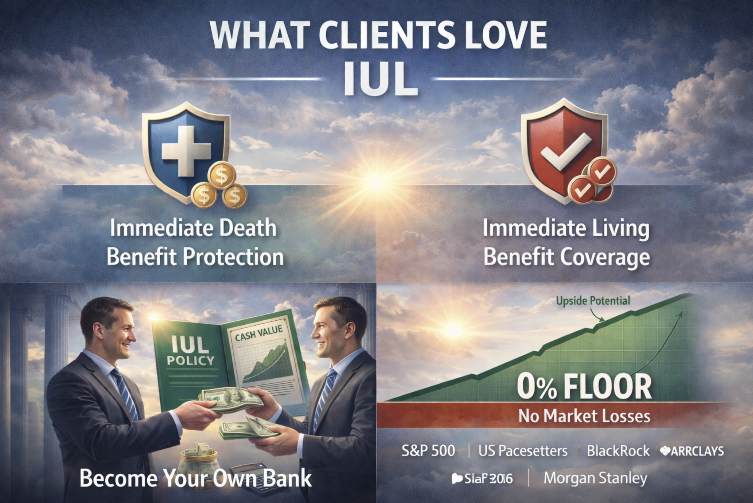 An IUL allows you to grow money safely, access it on your terms, and create tax-advantaged income—without relying on banks or market timing.